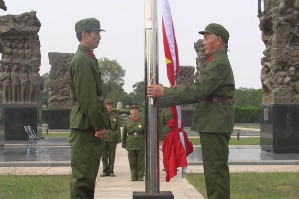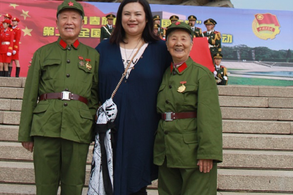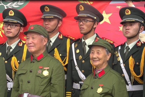 9月30日,第二个全国烈士纪念日,82岁的李叔善和81岁的张汉玲夫妇,从湖南飞抵北京,与来自新疆农业大学、西南交通大学、北京航空航天大学等26所高校国旗班400多名大学生升旗手共同升国旗,祭慰革命英烈,纪念中国人民抗日战争暨世界反法西斯战争胜利70周年。