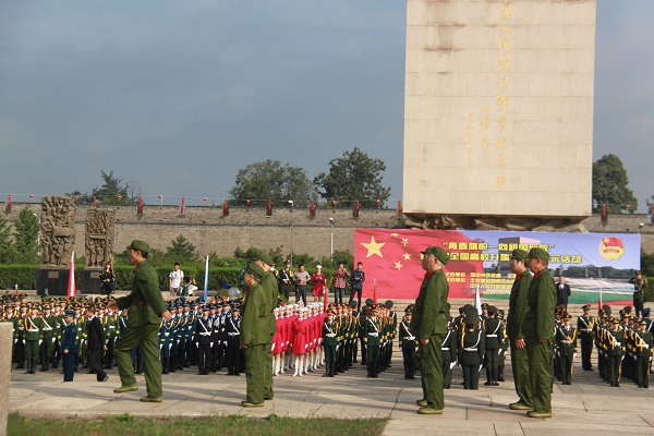 高校升旗手代表年轻一代敬献花篮,刘建少将代表革命后代宣读祭文,北京奥运会升旗培训专家组长、全国高校升旗手总教官、中国国旗网创办人、天安门国旗班第八任班长赵新风主持活动并带领全体高校升旗手宣誓。(图文/罗尧清)