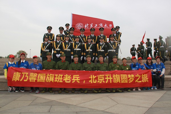 圆梦的机会在不经意间降临。3个月前,康乃馨社工服务中心得知“‘青春旗帜——向祖国致敬’第二届全国高校升旗手交流展示活动”9月30日在北京举行,于是主动联系,反复争取,终获邀请。然而,对于那些年逾七旬、八旬,甚至九旬的长者,要去北京升旗谈何容易!经过多轮筛选和体检,最终确定李叔善、张汉玲、李兵、李钧、王长生、刘国民、杨伯坚等7名老兵代表康乃馨长者国旗班前往北京升旗,他们都有过难忘的军旅经历,其中年龄最长的李叔善15岁参军,曾参加过辽沈、淮海、平津三大战役,年龄最小的李兵曾参加过对越反击战,班长杨伯坚13岁参军,离休后致力于青少年爱国主义教育。
