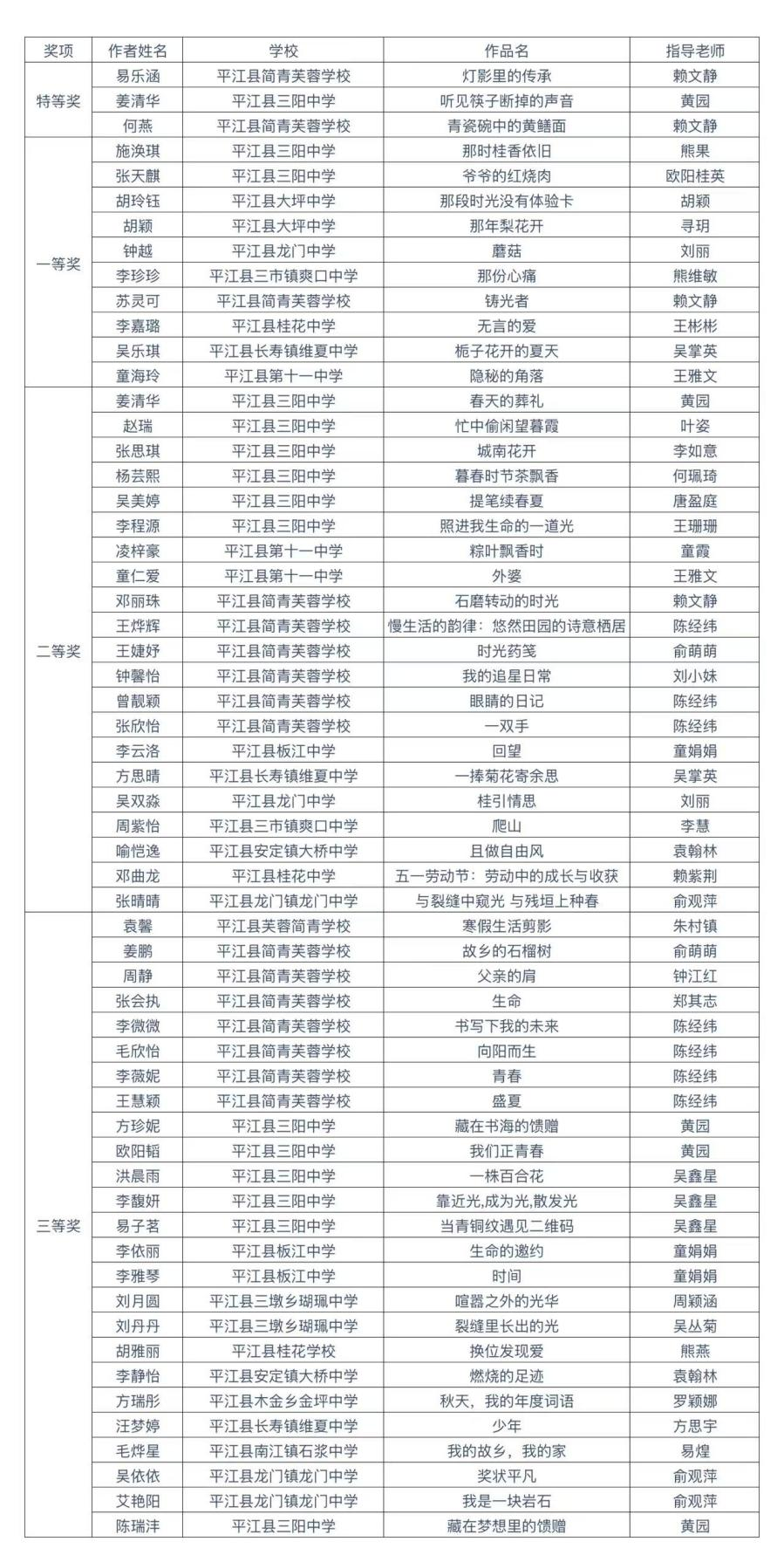 《初中生》寻找“千金作文”平江县获奖名单